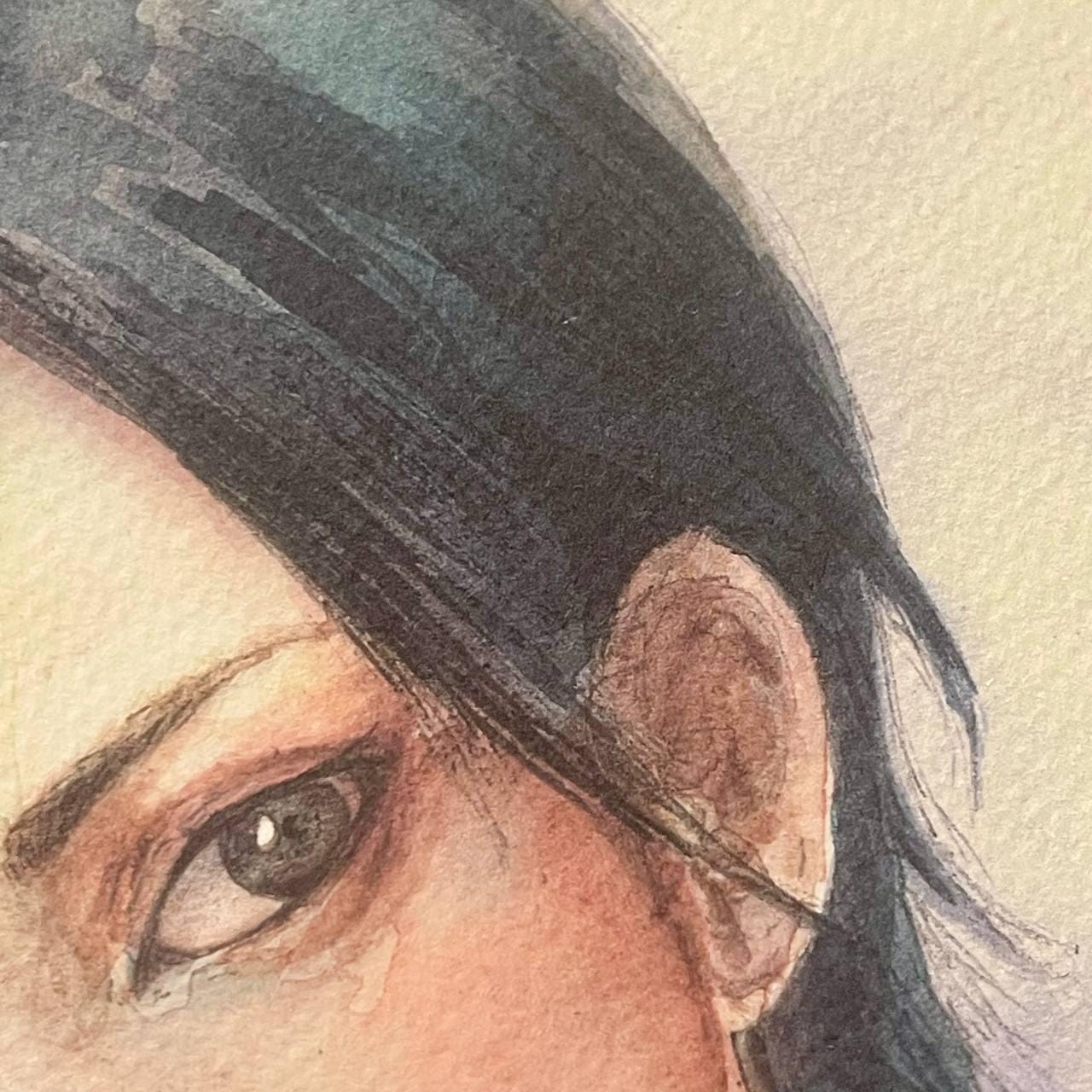 A detailed watercolour portrait of Ada Wong, inspired by her RE4 Remake look — painted with subtle layers and fine brushwork to capture her quiet strength and mystery.